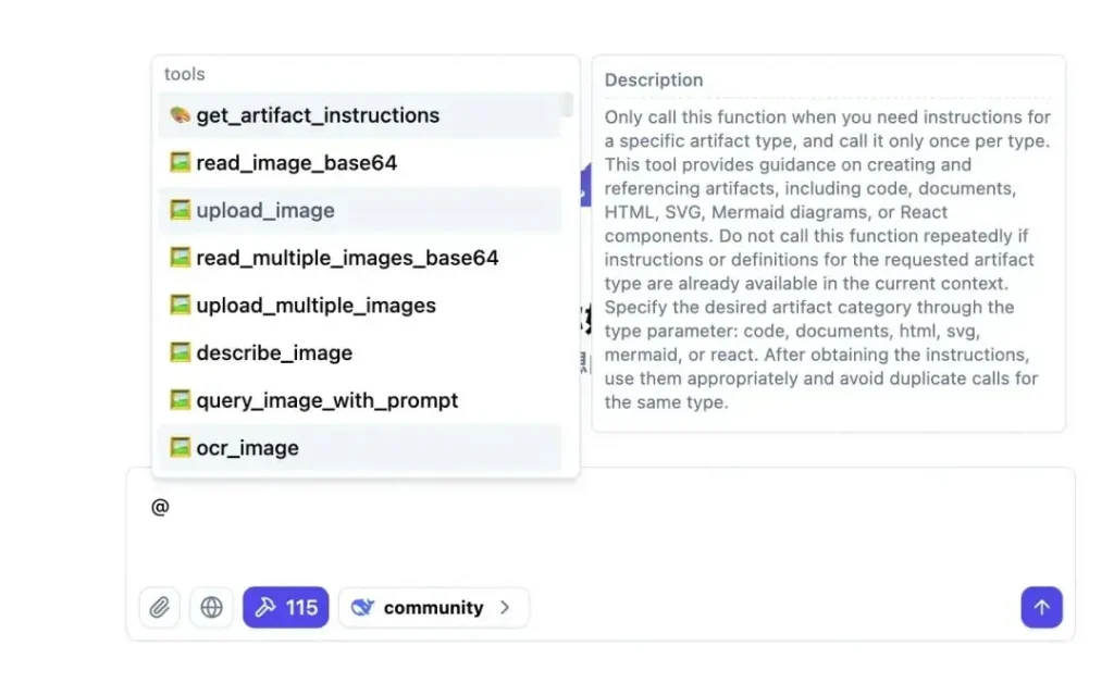 - @MCP Resources:调用各种模型能力平台提供的工具