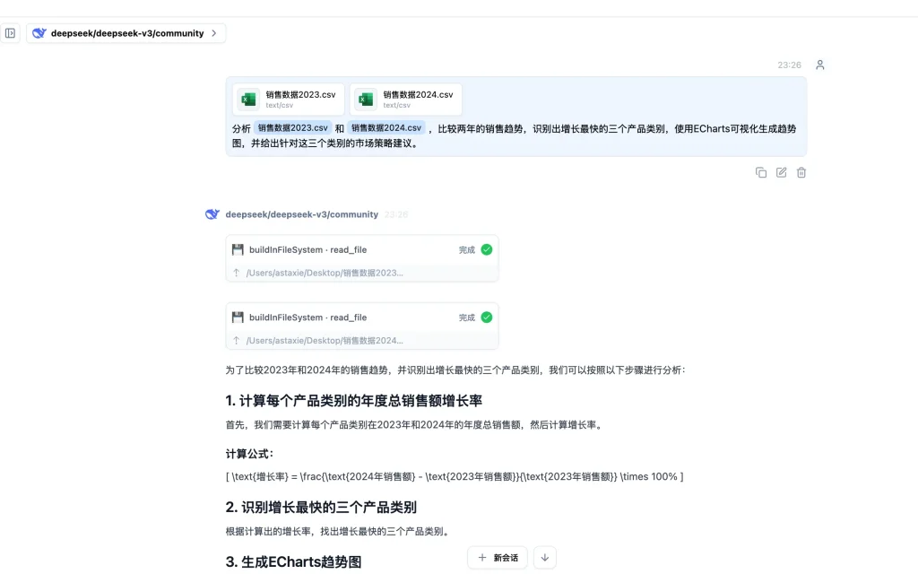 DeepChat 不仅完成了数据分析和可视化,还基于分析结果给出了具体的策略建议,真正成为了决策支持的 Agent。