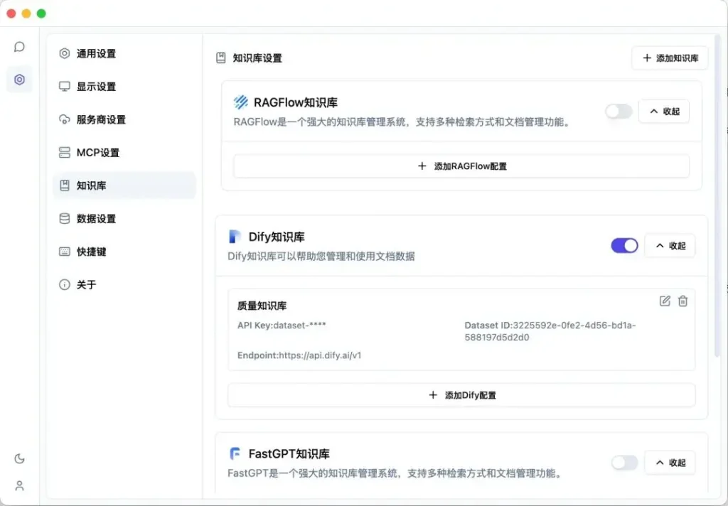 - 知识库检索:集成了 dify、ragflow 和 fastGPT 知识库,使 AI 回答更加准确、专业